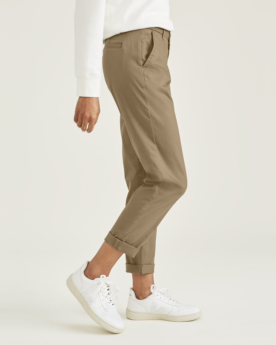 - A slim fit with a slight crop and a slim leg opening